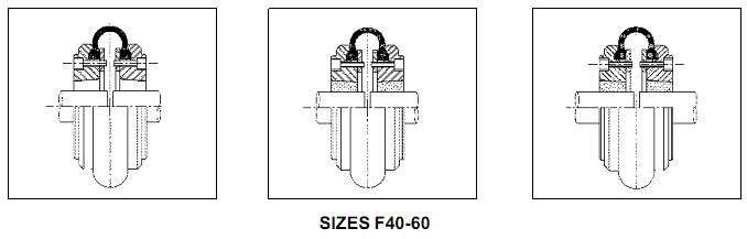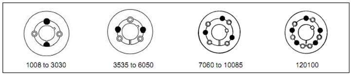 The variety of different flange arrangements, in either F (Face) or H (Hub) flange, allows the Taper Lock Bush to enter the hub from inside the coupling (F Flange). This allows the tyre coupling hub to be mounted against the bearing on a shaft, which will reduce overhung loads. Or the Taper Lock Bush is able to enter the hub from outside the coupling (H Flange), which, in some applications, may assist with ease of installation. Please see pictorial configurations below.