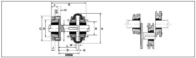 A feature offered by the Martin-Flex and Fenner Flex tyre couplings, which are not commonly available from other manufacturers, is the addition of a spacer unit accommodating for standard distances between shaft ends (DBSE). This often facilitates ease of maintenance for pump applications of 100, 140, & 180 mm DBSE. For further details, please refer to Figure 1 below.